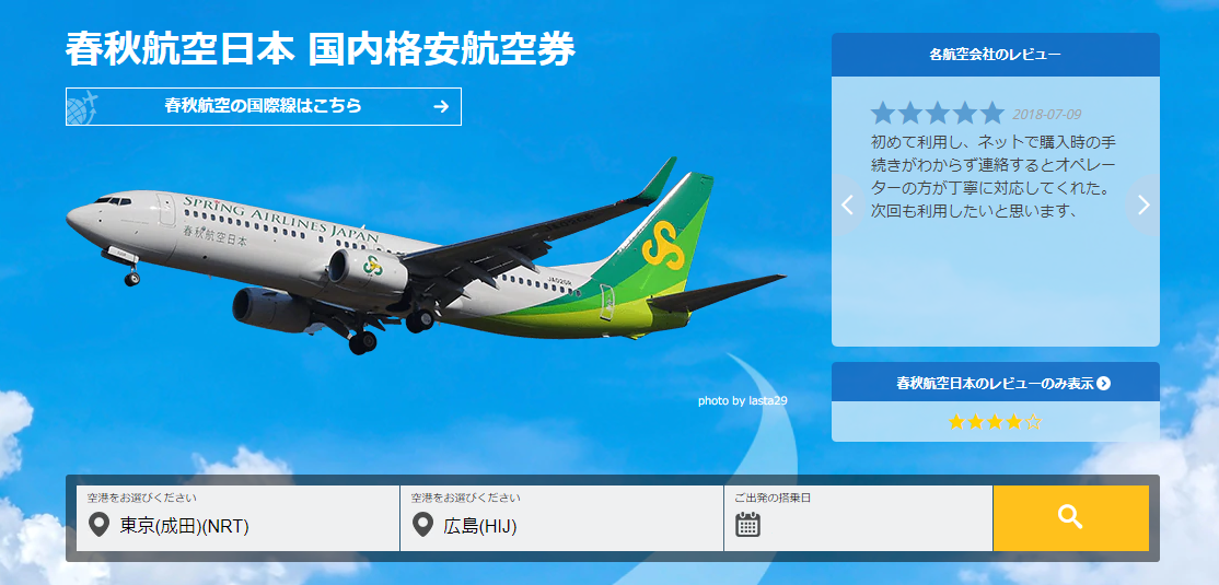 春秋航空の予約はスカイチケットがオススメ!